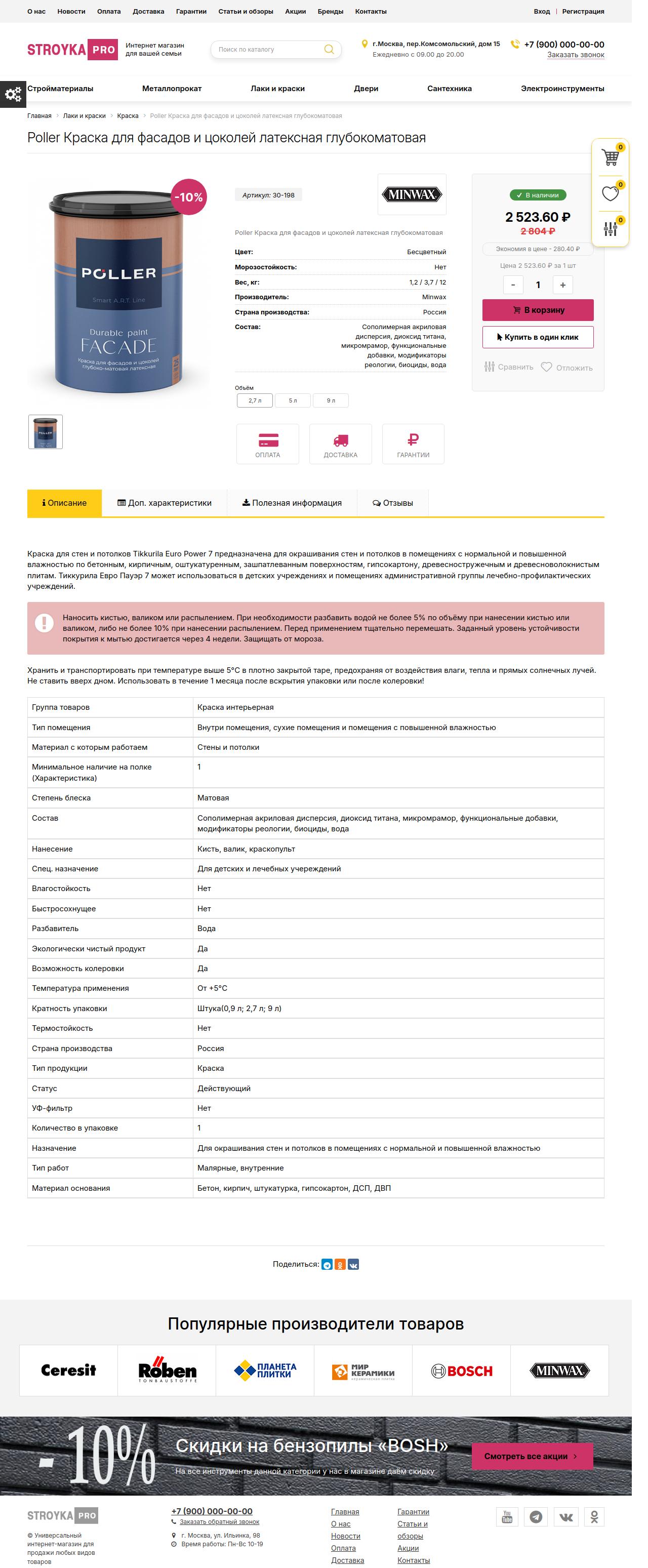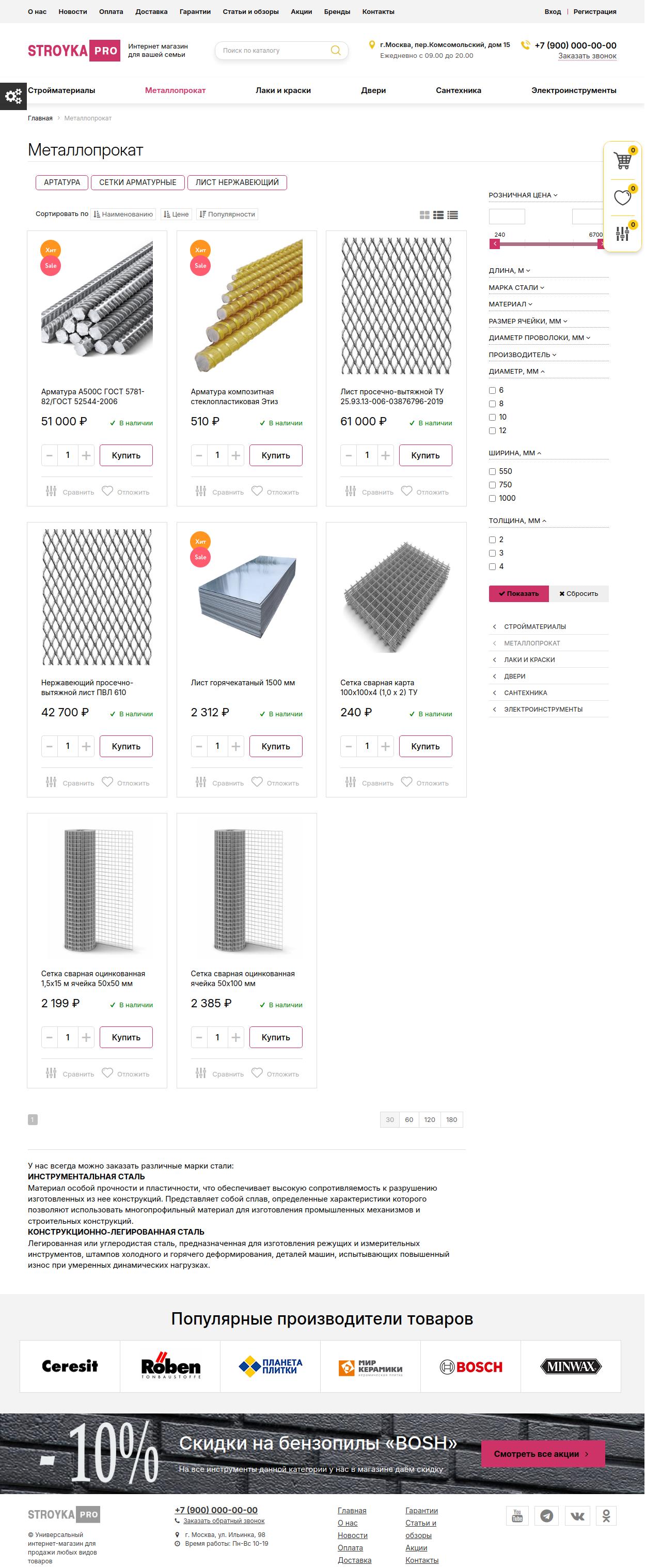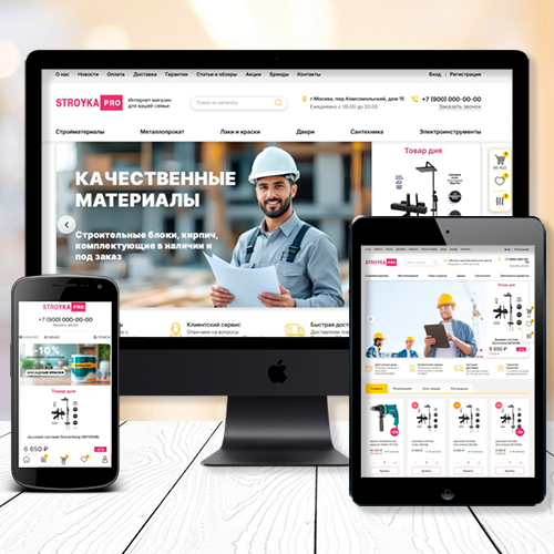 STROYKA - это коробочное решение для создания интернет-магазина для разных тематик. Сайт ориентирован на продажу мужских товаров: электроинструмент, всё для ремонта и стройки, автомобильные товары и др.